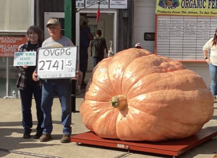 In 2025, a New York record was broken with a 2741.5 pounds of pure orange gold. The pumpkin was weighed at Parks Garden Center in Ohio. Yes, it was a long way to drive to Ohio if your pumpkin was grown in New York, so you had to assume it had to do with the prize money or bragging rights.